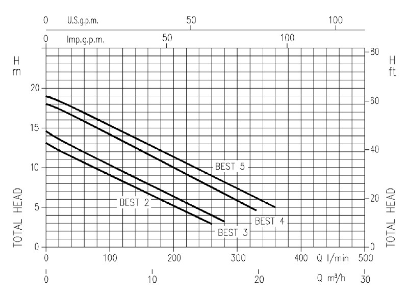 ESPECIFICACIONES -Máxima temperatura del liquido: 40°C. -Máxima inmersión: 5 mts. -Máximo paso de sólidos en suspensión: 10mm. |