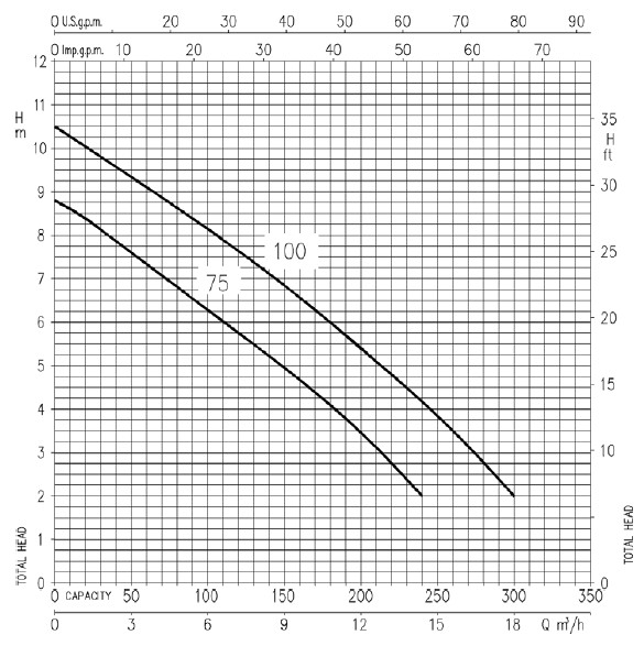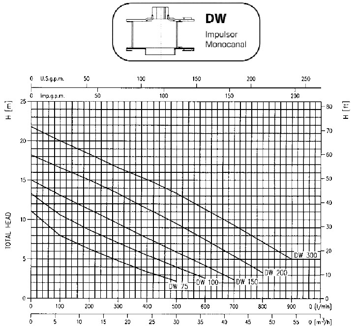ESPECIFICACIONES -Máxima temperatura del liquido: 40°C. -Máxima inmersión: 5 mts. -Máximo paso de sólidos en suspensión: 35 mm. |